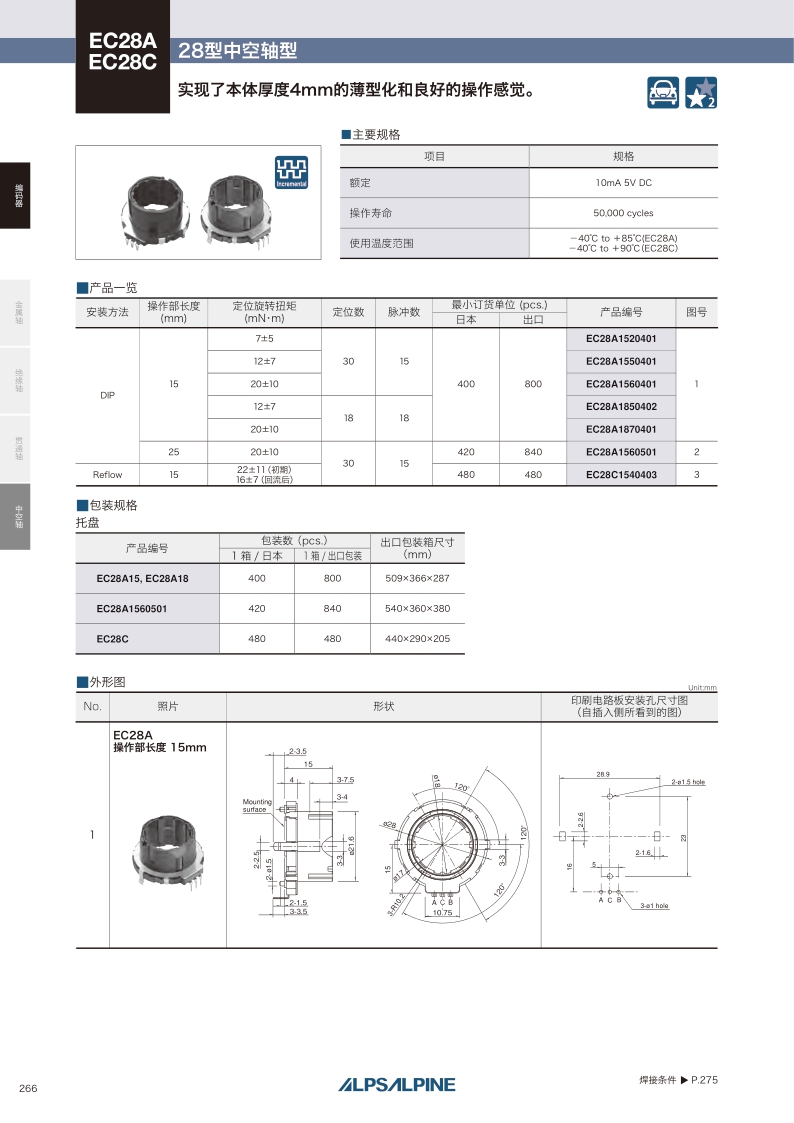 EC28A/EC28C系列——ALPS中空軸編碼器