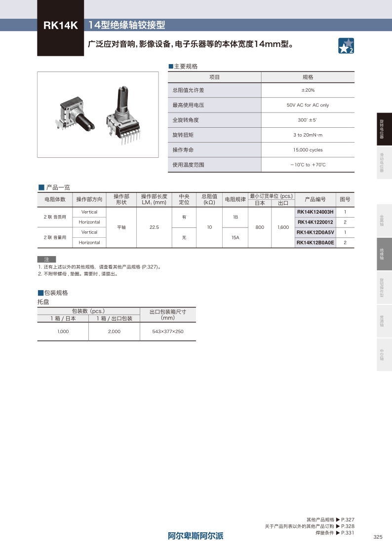RK14K12D0A5V 照片 2聯(lián) Vertical 平軸 22.5mm 10kΩ 15A 14型