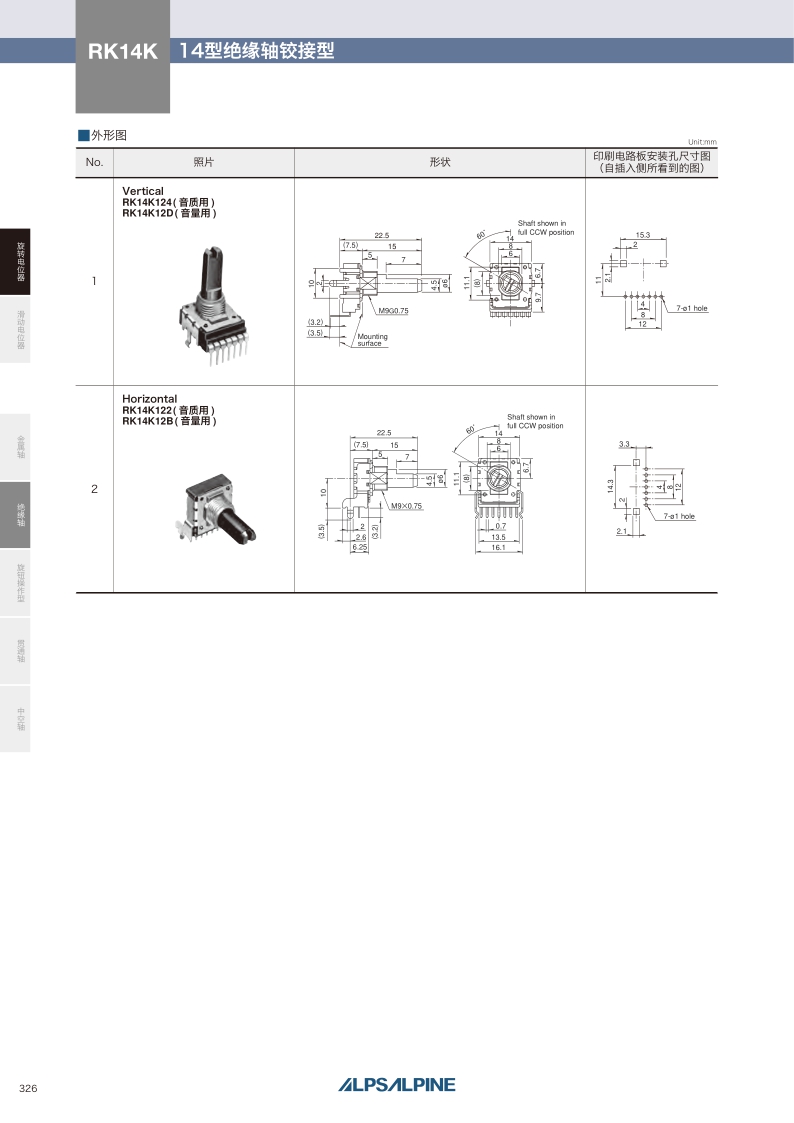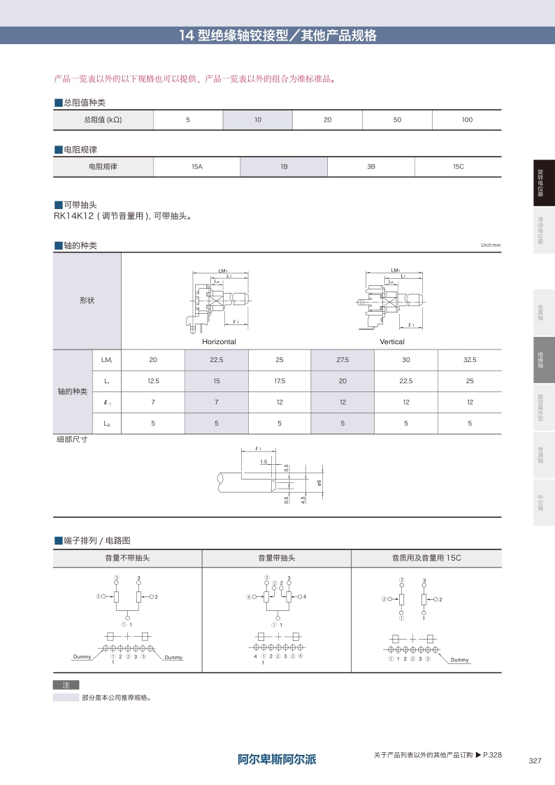 產(chǎn)品編號(hào) 照片 電阻體數(shù) 操作部方向 軸套 操作部形狀 操作部長度 LM1 定位 總阻值 電阻規(guī)律 尺寸