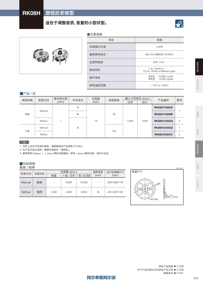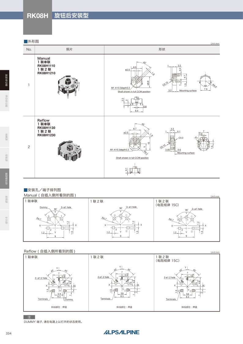 RK08H系列——ALPS旋轉電位器