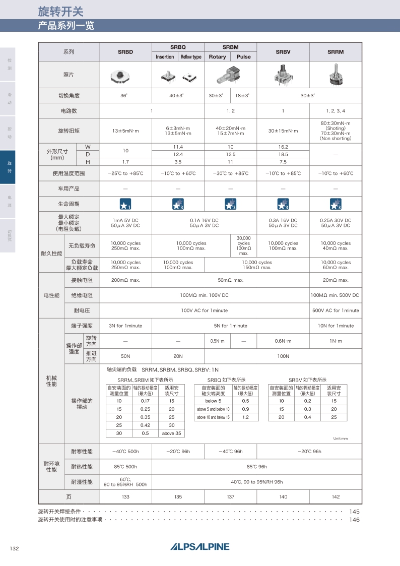 產品編號 照片 電路數 接點數 切換角度 切換時限 旋轉扭矩 操作部形狀 焊接方法 操作部長度 尺寸(W×D×H)