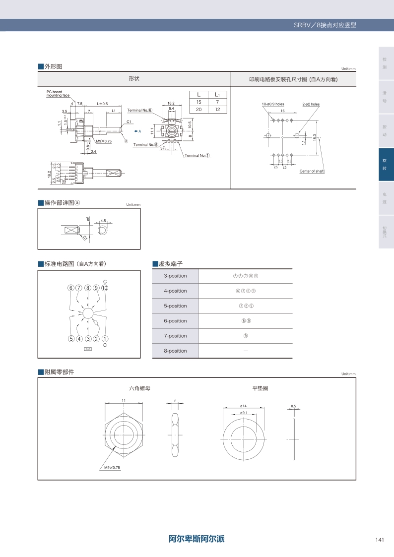 SRBV170501 照片 1 7 30±3° Non shorting 30±15mN·m Flat L: 20mm 16.2×18.5×7.5mm