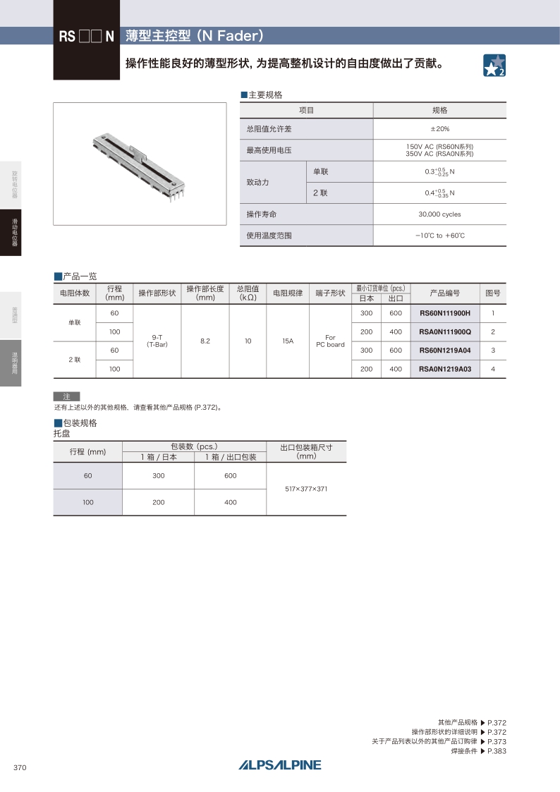 RSA0N系列——ALPS滑動電位器