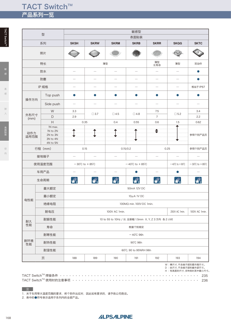 SKRWADE030 照片 Surface mount 2.35N Top push 0.15mm 0.35mm 50,000 cycles 100mΩ max. 3.7×3.7×0.35