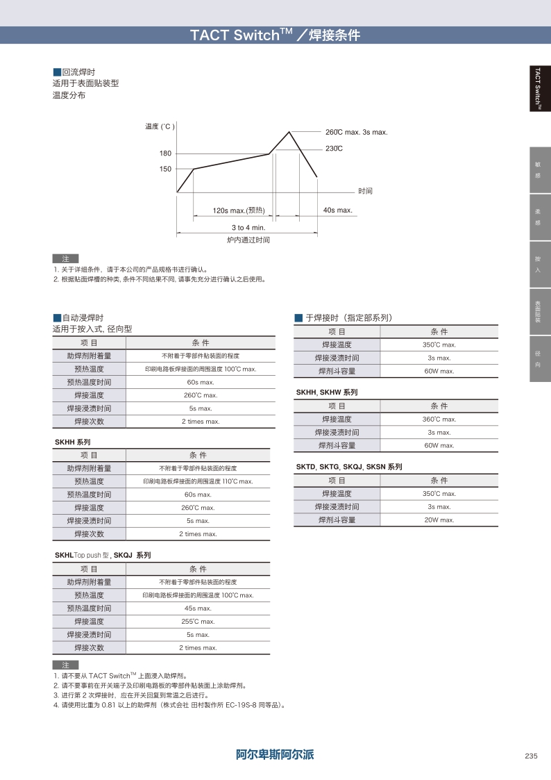 薄型0.9mm 雙重動作型?操作感覺:敏感 ? 貼裝方式:表面貼裝 ? 尺寸(W×D×H):□6.0×0.9mm ? 特長:雙動作。